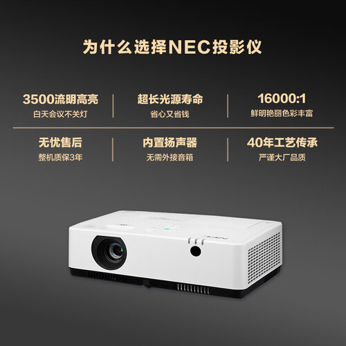 拥有3500流明亮度,家用公用都很合适。屏幕宽高比为4:3,观影感强。支持无线投影以及U盘直读,兼容性强。