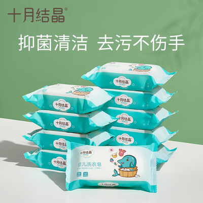 十月结晶护婴儿洗衣皂,选用天然萃取艾草精华,在不伤手的前提下,加倍抑菌、深层去污;多倍洁净,柔护衣物,保护宝宝衣物色彩。