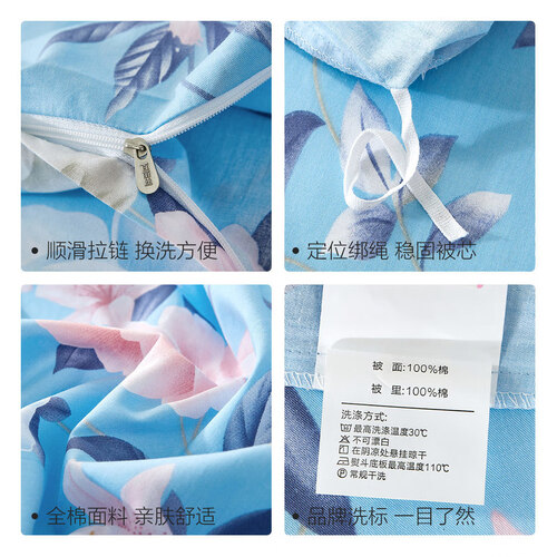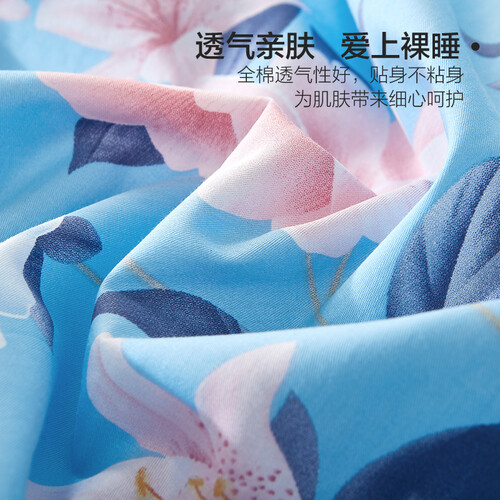 使用亲肤全棉材质,温暖由内而外,细腻呵护你和家人的睡眠;花卉图案设计,在室内也能感受到春意盎然,带来清新视觉体验。