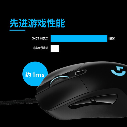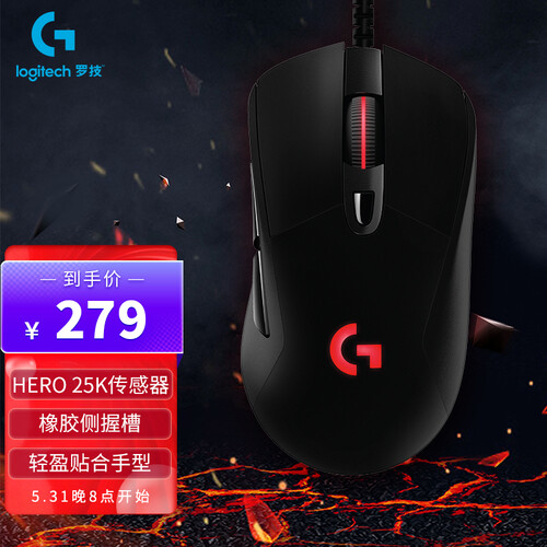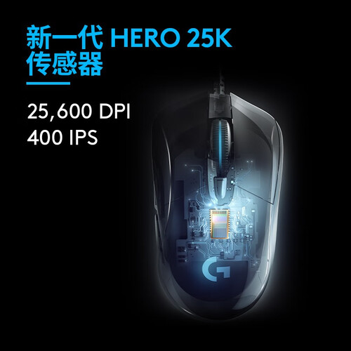 采用符合人体工学设计,适合右手操控。搭载HERO25K传感器,具有400+IPS移动速度,峰值DPI达25600。