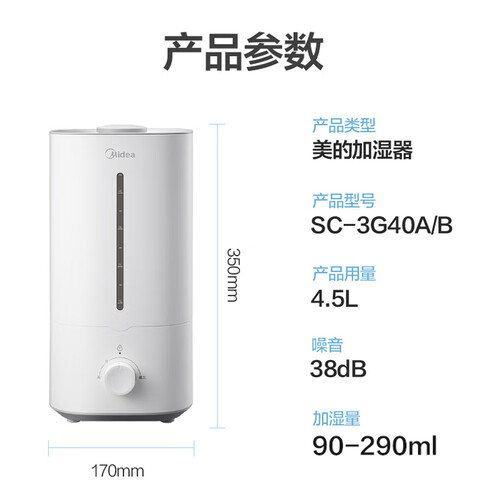 美的 轻音高出雾加湿器