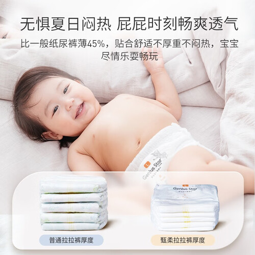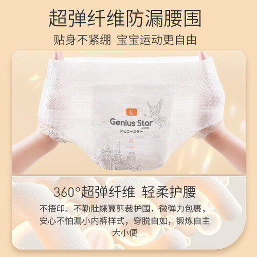采用立体压花面层,快速吸收瞬间导流,让小屁屁时刻净透干爽。高腰护肚设计,舒适不勒腰,宝宝怎么动都舒适。