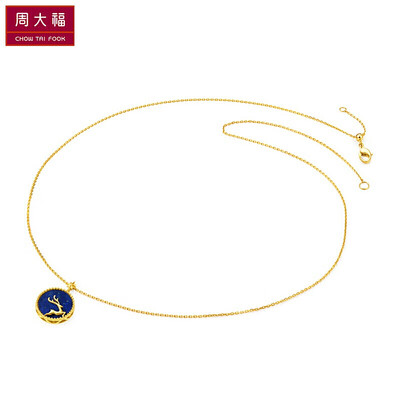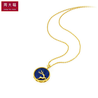 跳跃的金色麋鹿装饰深蓝色的圆形青金石上,灵动别致,神秘梦幻。纤细的链条,尽显女性魅力。