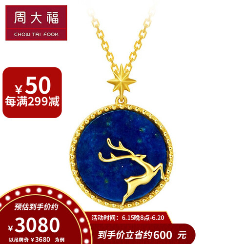 周大福 圣诞麋鹿青金石K金项链