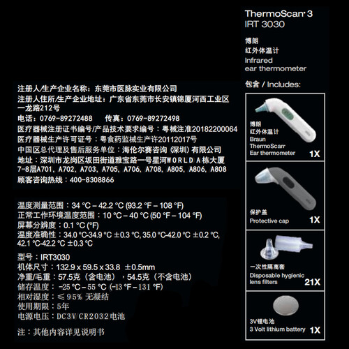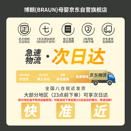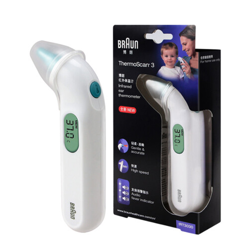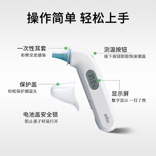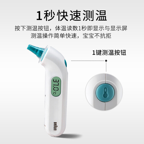 博朗耳温计运用红外线传感技术,一键即可测温,准确快速。搭配一次性柔软卫生的隔离套,可防止交叉感染,能带给宝宝舒适的体验。