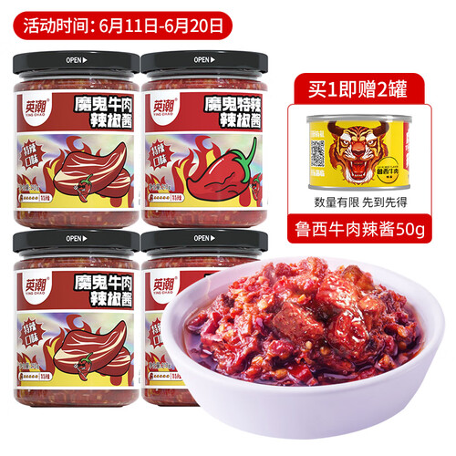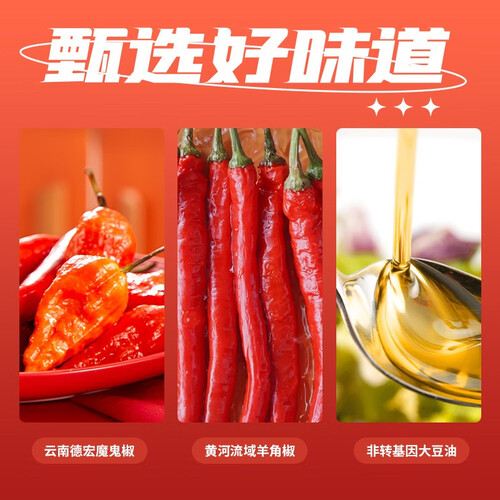 虎邦辣椒酱用精选的食材还原真实的味道,黄牛肉纤维细腻,肉香散溢,吃多也不腻,鲜辣爽口,击穿你的味蕾。