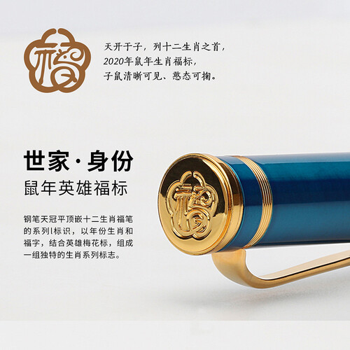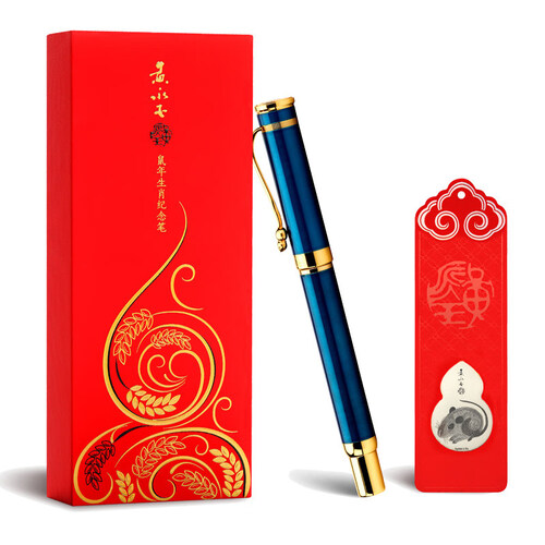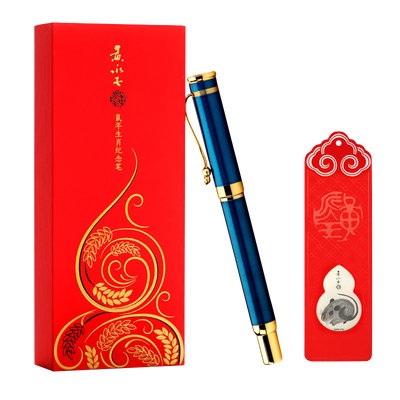鼠年生肖纪念笔,具有很好的纪念价值,同时能给予使用者美好的祝福,深得大多数人的喜爱,金色与蓝色搭配的笔身,象征着尊贵。