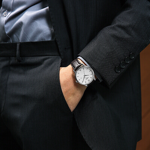 表盘采用皓银色调,凸显男性绅士魅力,适合多种场景穿搭需求。皮质表带设计,触感柔和亲肤,不易起汗致敏性低。