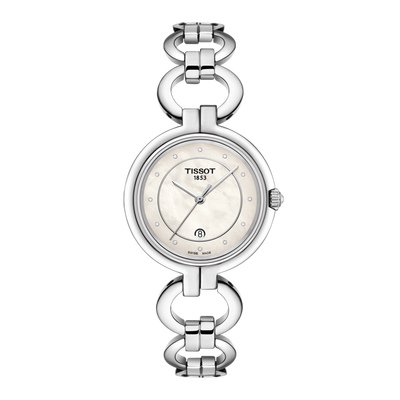 珍珠贝母表盘闪耀着光泽,温润细腻,展现女性恬静柔美的一面。不锈钢的表壳线条干净利落,造型感十足。