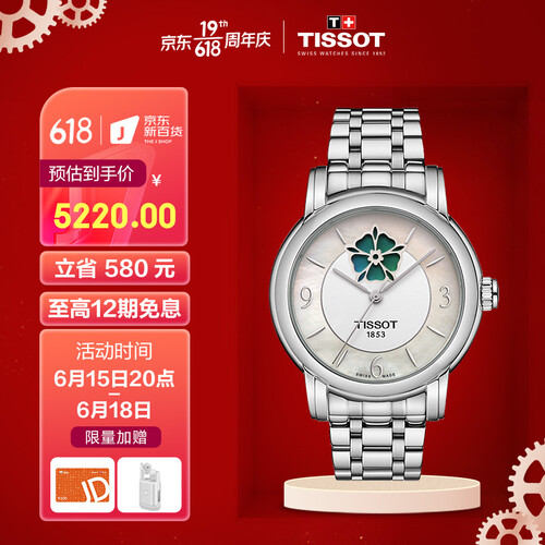 天梭 钢带机械女士手表