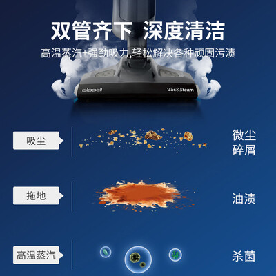 蒸汽,吸尘,拖地可以同步进行,一机即可完成全屋的深度清洁,使用更方便快捷。尘筒设计不脏手,省心省力。柔软绒布,呵护地板。