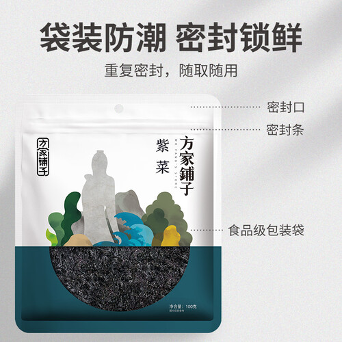 方家铺子紫菜精选优质食材原料,晾晒干制,拒绝添加,做放心的良心品质紫菜,给你本真鲜美好滋味。