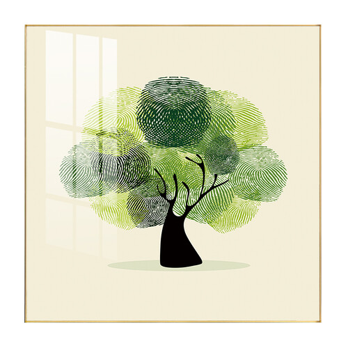 具有创意性的一款装饰画,与一般的树的构造不同,它采用的是指纹的形状,且每一块指纹的颜色深浅不一,更加有艺术感。