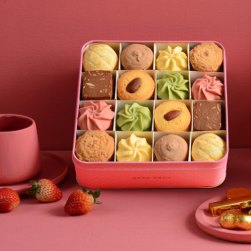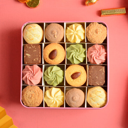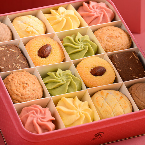 在曲奇饼干的中央放置了大粒的坚果仁,在好吃的同时补充营养。曲奇饼干的制作多种多样,粉红色的花瓣形状,好看更好吃。