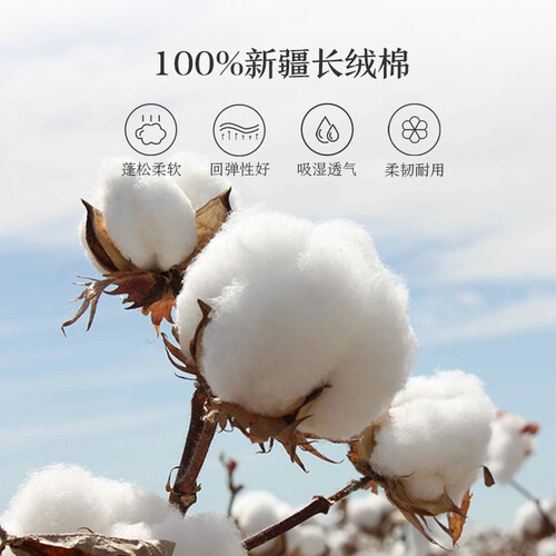 甄选新疆长绒棉织造而成,经过18小时以上的日常光合与雨露滋养,棉花的纤维柔长细腻,面料更加柔软保暖。