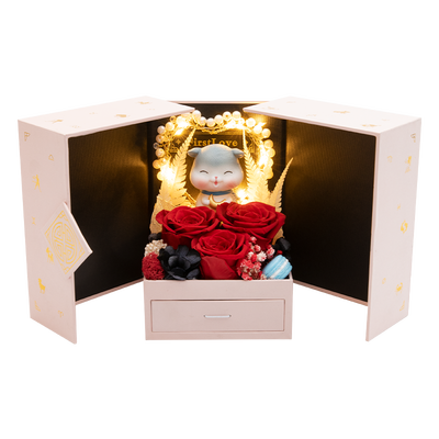 特别采用萌鼠造型的设计,圆润线条带来满满的趣味性,激发你的少女心。经由多道精细工艺处理的玫瑰拥有更艳丽的色泽,浪漫十足。