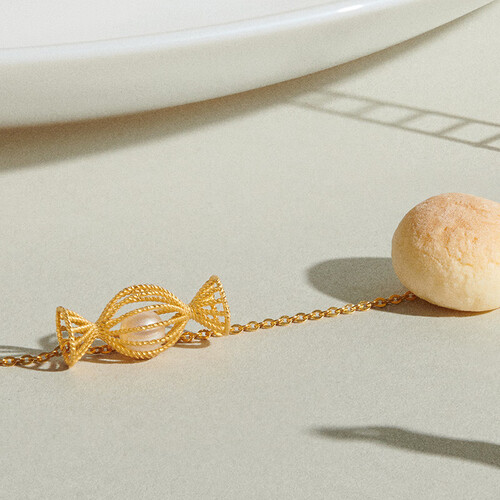 金丝镂空糖果造型,加以珍珠嵌入的设计,可轻松打造出时尚潮流风范。同时手链具有的多种佩戴风格,能够轻松适应多种日常穿搭。