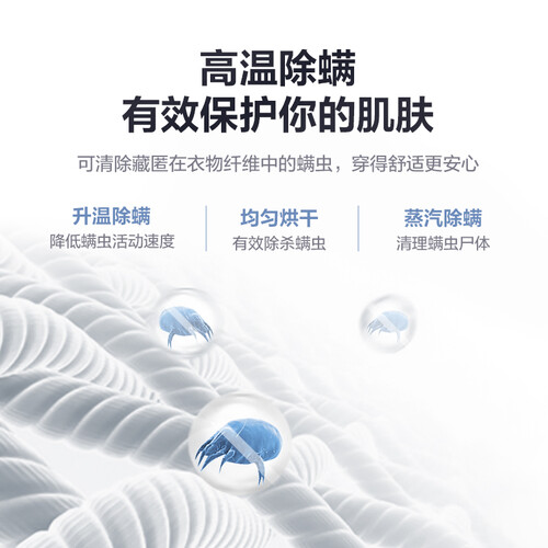 高温净螨,可清除衣物纤维深层的螨虫,穿衣更舒心。内置紫外线UV灯,360度消除细菌,守护家人肌肤健康。