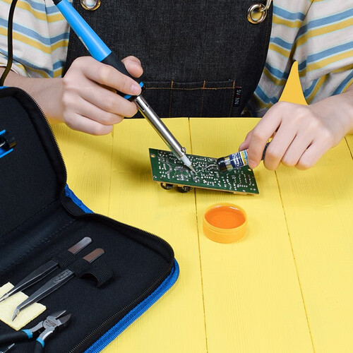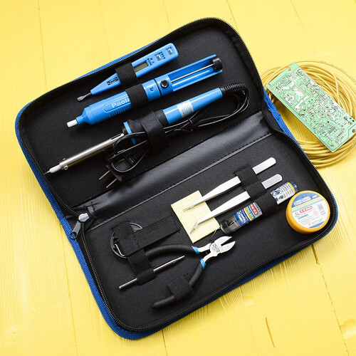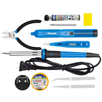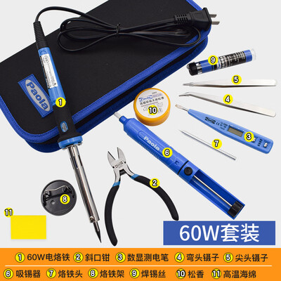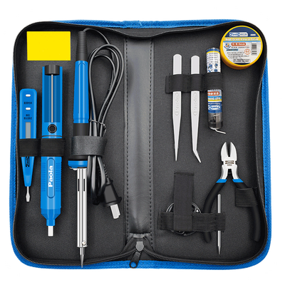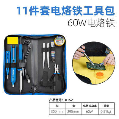 含有电烙铁、吸锡器、焊锡丝、烙铁头等11件工具套组,选用优质材质,精湛工艺制作而成,包装小巧方便收纳。