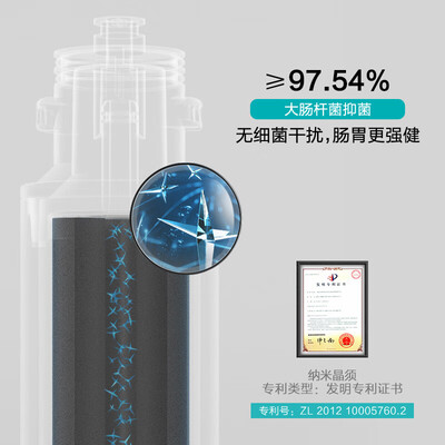 采用纳米晶须技术,吸附余氯异味,保障直饮水纯净好喝,螺旋快接式换芯设计,像换灯泡一样简单。