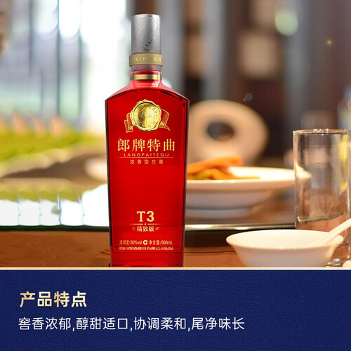 精选优质小麦、高粱、玉米、糯米等五谷为原材料,以郎酒传统工艺酿造,再经过特殊窖泥熏陶,使得制出的白酒,酒体纯净无杂质。