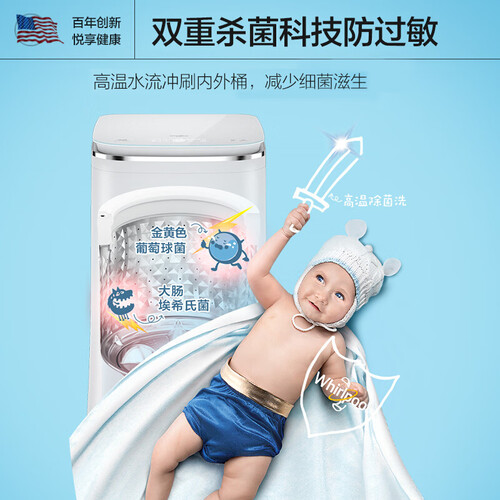 搭载高温水流,可对内外桶进行清洗,避免细菌滋生,干净又卫生。采用全息触控屏设计,清晰呈现数据,操作更方便。