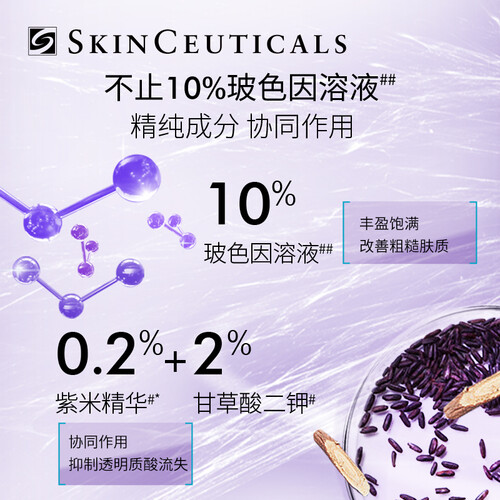 紫米精华的美肤成分,通过减缓透明质酸的流失来维持肌肤润泽。丰盈补水,令肌肤呈现亮泽细腻的好状态。