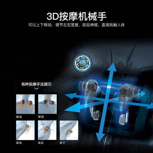 智能就坐感应功能,自动亮起LED灯,让你操作程序按摩更方便。4种自动程序搭配6大按摩技法,满足不同的按摩需求。