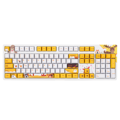 卡通键帽,精致时尚,适合颜控女生使用。经过热升华工序的PBT键帽,手感细腻,更加耐磨。全键无冲设计,轻松完成复杂操作。