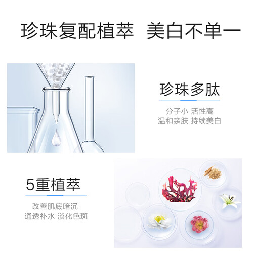 蕴含珍珠原生多肽成分,有效淡化黑色素,使肌肤更显白皙透亮。五大植萃精华,改善肌肤干燥状态,使肌肤更嫩滑。