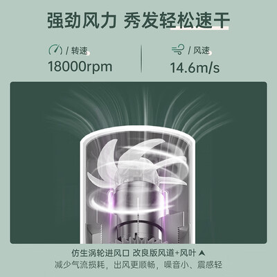 内置澎湃风力电机,吹风时高速旋转产生强大的离心力气流,快速吹干秀发。拥有多个挡位可选,可快可柔,任你自由定制百变造型。