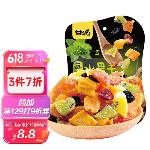 六种果肉的混合包装,轻烘慢烤脱去果肉中多余水分,保留了原色原香,口感软糯有嚼劲,每一口都清爽可口。