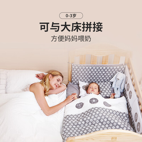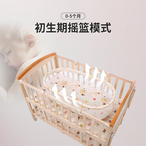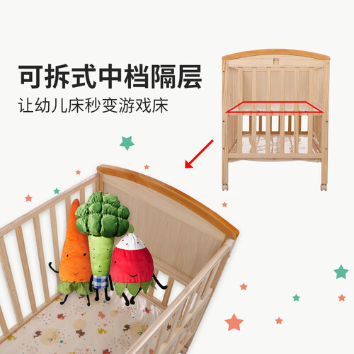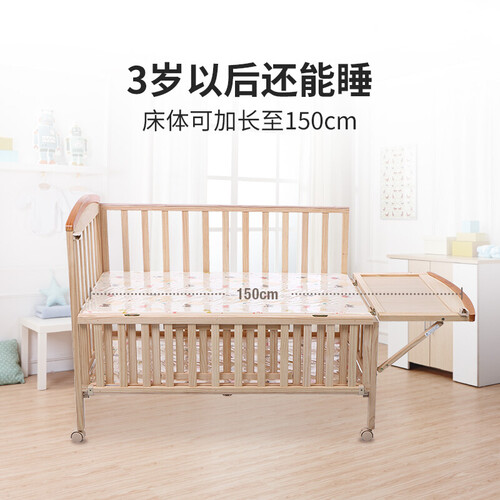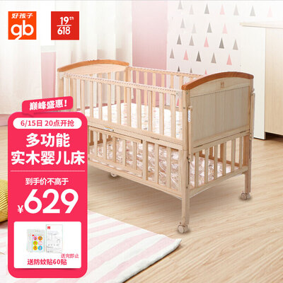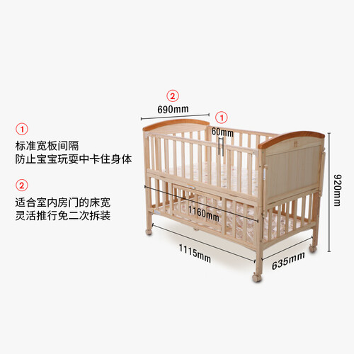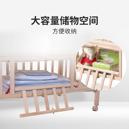 甄选高品质实木材质制作而成,环保健康。搭配精湛的做工,赋予这款婴儿床出众的质感,手感舒适,亲肤无毛刺,呵护宝宝娇嫩肌肤。