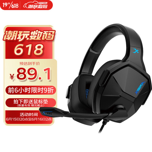 轻量化设计机身,舒适轻易佩戴,配合蛋白皮耳罩,舒适贴合耳廓,长时间佩戴不压头。