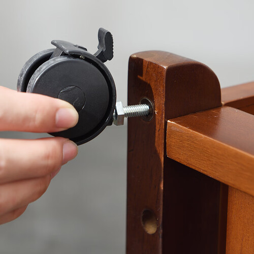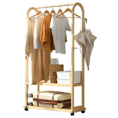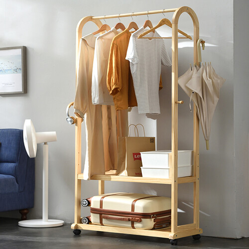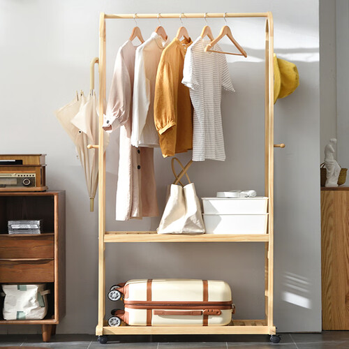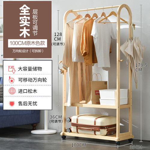 装有万向滑轮,滑轮自带安全锁扣,固定位置后可以避免滚动;实木材质,坚固硬实,悬挂重物不会断,让您用着无后顾之忧。