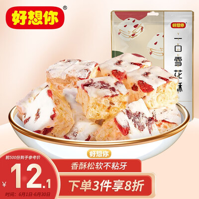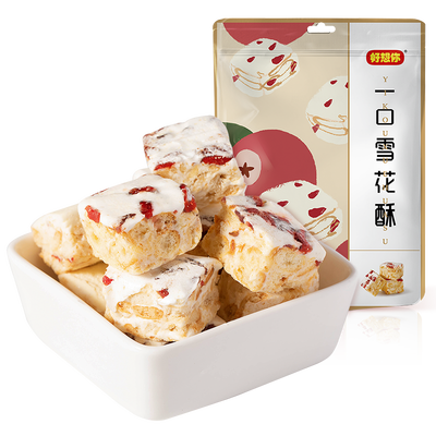 一款风味特殊的雪花酥,蔓越莓、奶油和麦芽糖相互配合,满足你不同食欲需求。隧道式微波炉烘烤工艺,使得雪花酥更加酥脆可口。