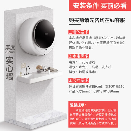 内置母婴专属洗程序,可将宝宝衣物分开洗涤,避免交叉感染。壁挂式设计,更能节省空间,适合小户型家庭使用。