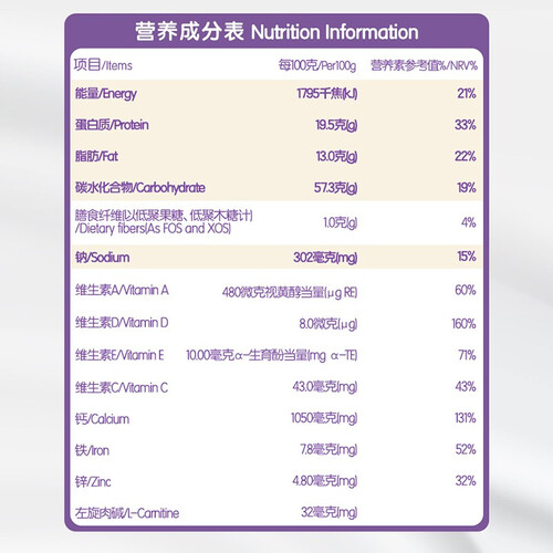 采用了附聚控制技术,奶粉颗粒均匀,易于冲泡,营养成分易吸收。经过五大体系质量管控,符合国家质量要求,饮用更放心。