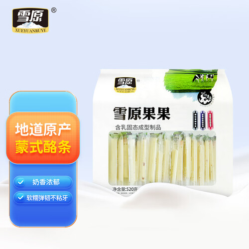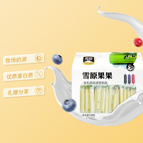 雪原这款蒙古牛奶条,采用来自新西兰的乳粉,并添加了鲜牛奶,融入果粒,味道香甜与众不同。色泽鲜亮,酸软柔滑,心怡的美好。