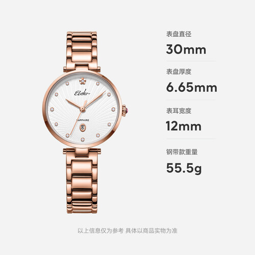 多颗锆石结合花瓣造型,带来灵动闪耀的视觉效果,展现出佩戴者的优雅气质。表冠采用花瓣造型,做工考究,细节之处更显精致。