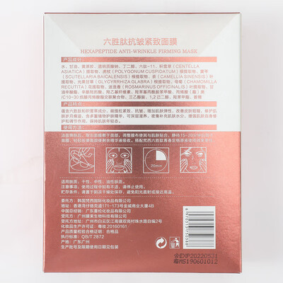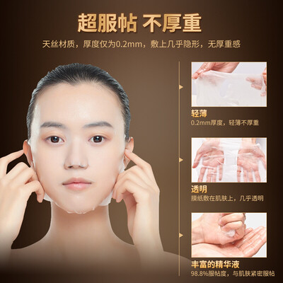 内含大量的六胜肽精华,紧致肌肤,有效抑制皱纹的滋生,延缓肌肤衰老。优质蚕丝膜布,亲肤性好,让肌肤快速吸收精华成分。