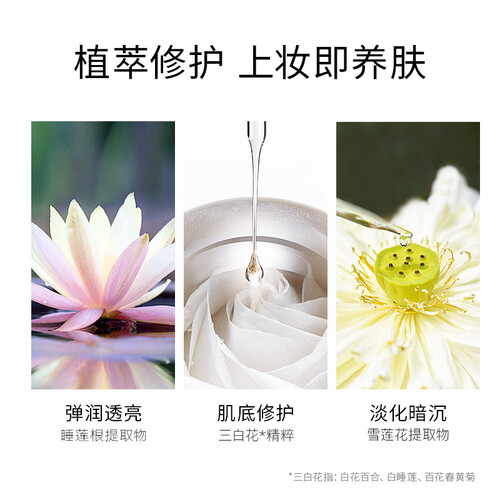 轻盈细腻的质地,具有良好的延展性,易于推开,上妆不卡粉;其中蕴含丰富的矿物质成分,能够帮助修正肤色。
