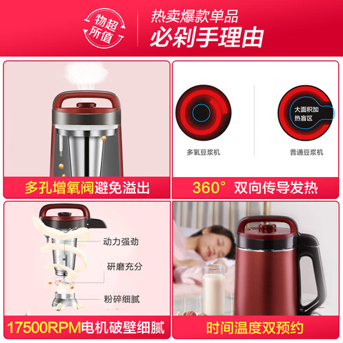 美的豆浆机内置高速破壁电机,击破食物内壁,释放营养。带有双重控温系统,为你掌握好火候,豆浆更加美味。