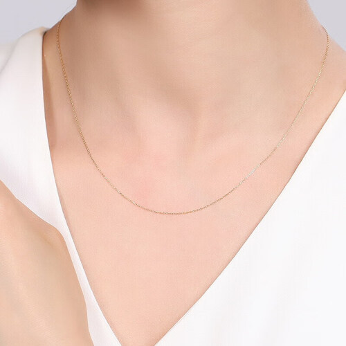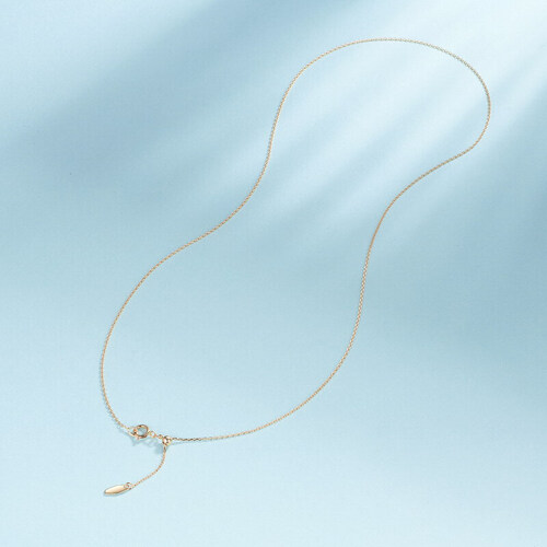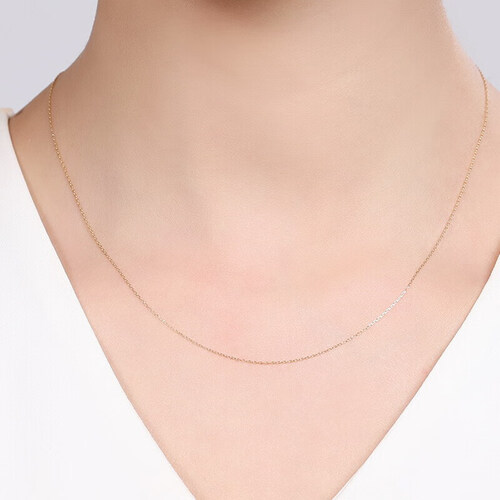 这款项链采用18K金材质打造,色泽亮丽大气,尽显优雅气质范。简约素链设计,适合各种穿搭风,有效修饰颈部线条。