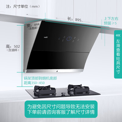 隔空挥手操作,防止油污污染面板。采用弧面导烟屏和895mm宽域拢烟屏,星幕双屏一导一拢不留烟。