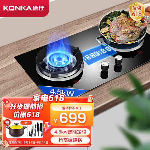 智能定时功能,到时间即可自动关火停气,无需专人看管。4.5Kw大火力,全面提升烹饪速度,无需久等就能做出多种美味。