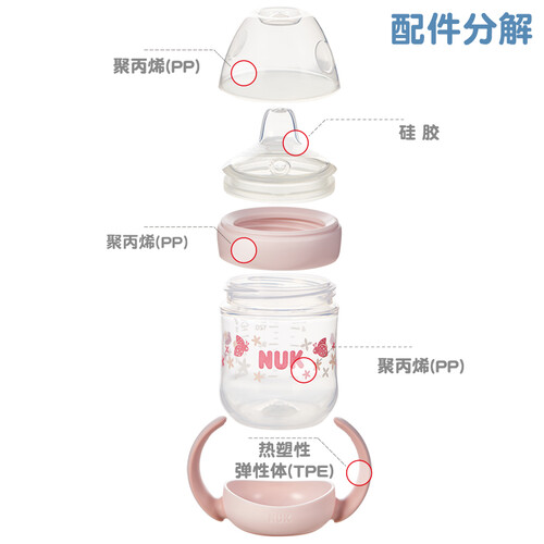 专为宝宝小手设计的学饮杯,一杯两用,安全防漏,大口径,清洗更方便。时尚印花造型,可作奶瓶使用。