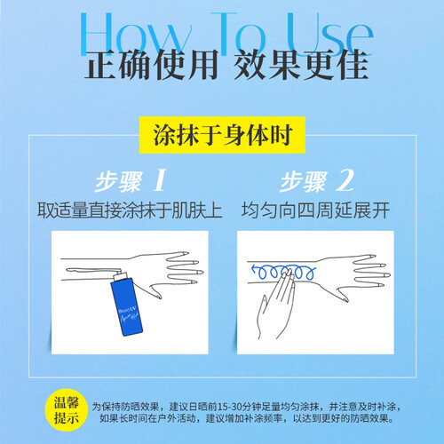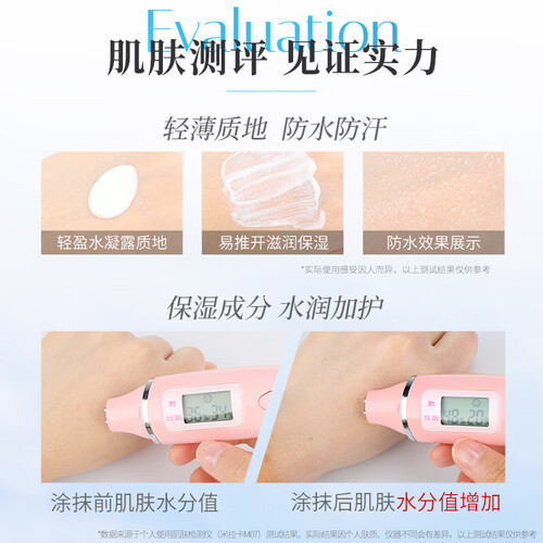 内含玻尿酸保湿成分,滋润的凝露质地方便涂抹。防水防汗的效果能够有效地避免夏季脱妆,防止紫外线伤害皮肤清爽舒适。