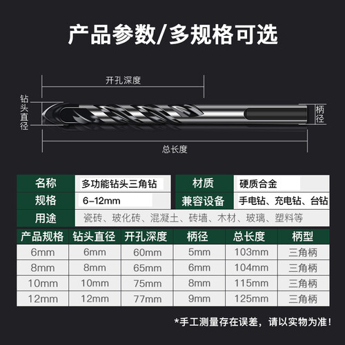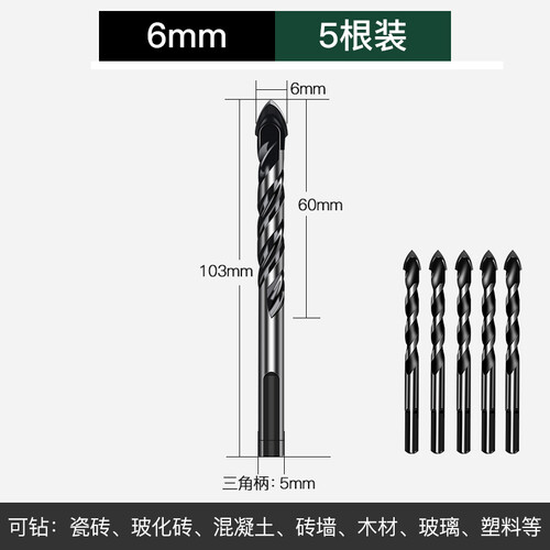 多功能合金材质三角钻,硬度高耐磨锋利,适用于大理石、瓷砖等材质。双U型排屑槽设计,顺畅排出废屑不卡顿。