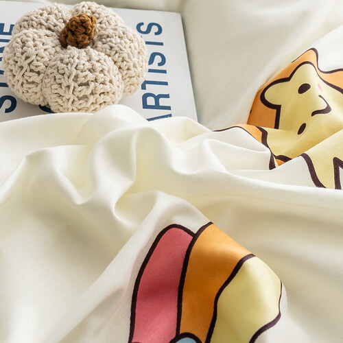 选用精梳全棉面料,更加亲和人体肌肤,带来柔软透气的体验适合裸睡。融入了清新的印花,色彩明亮让人观感舒适。